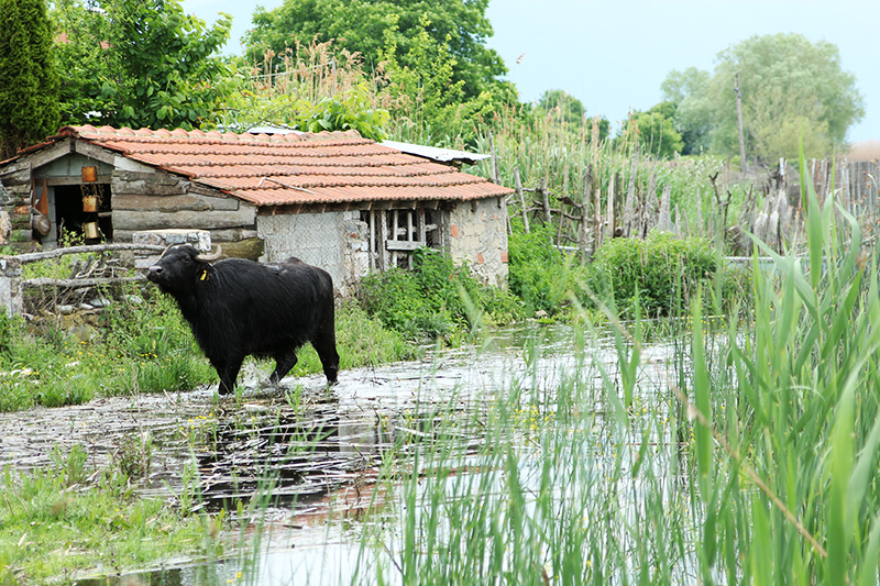 Κάπου εκεί έκανα την επίσκεψή τους κάποιοι…απρόσκλητοι επισκέπτες. Ήταν οι νεροβούβαλοι της περιοχής, μια σπάνια τοπική φυλή βοειδών τα οποία ζουν σε κοπάδια, πάντα ελεύθερα και ξεδιψούν και δροσίζονται τους ζεστούς μήνες του καλοκαιριού στα δροσερά νερά της λίμνης. Όλα αυτά κάνουν το κρέας τους να είναι πολύ μεγάλης διατροφικής αξίας με λίγες θερμίδες, λίγα λιπαρά αλλά υψηλής περιεκτικότητας σε πρωτεΐνες και σίδηρο.