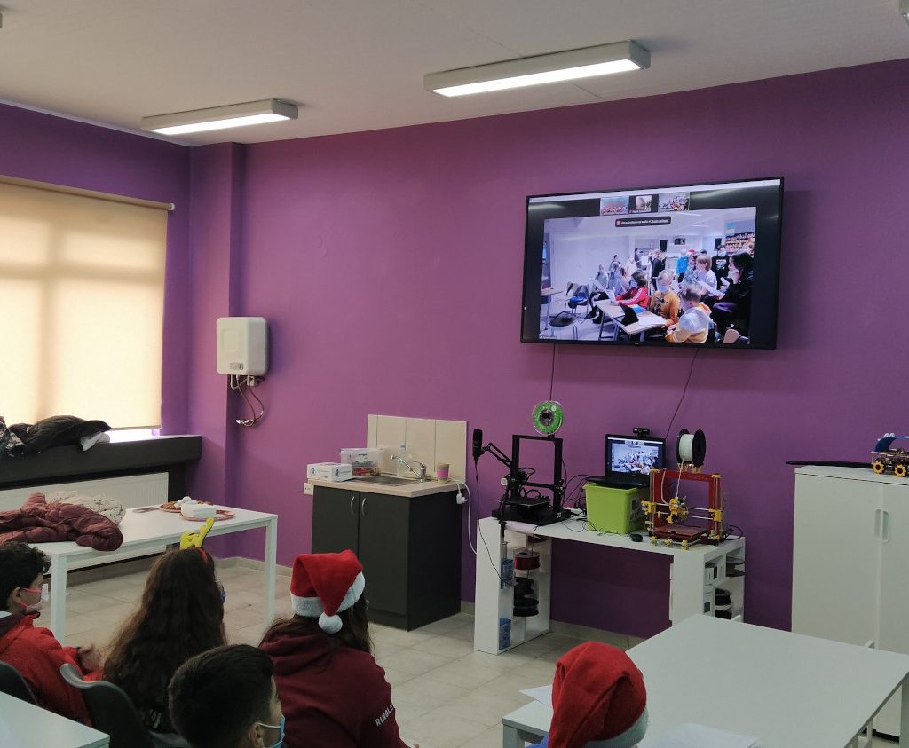 Στο πλαίσιο του ευρωπαϊκού προγράμματος What a Wonderful World, οι μαθητές της 5ης τάξης του σχολείου μας συνδέθηκαν ζωντανά με τα παιδιά της 5ης τάξης του σχολείου Tampereen yliopisto Normaalikoulu, yläkoulu από την Φινλανδία. Κατά την διάρκεια της σύνδεσης τα παιδιά αντάλλαξαν πληροφορίες για τα έθιμα της κάθε περιοχής, τραγούδησαν Χριστουγεννιάτικα κάλαντα και μελωδίες και ευχήθηκαν καλές γιορτές! Παράλληλα τα κορίτσια της τάξης με την βοήθεια της κ. Σοφίας Βογδάνου ετοίμασαν ένα μικρό βίντεο με παραδοσιακούς χορούς το οποίο μοιράστηκαν με τα παιδιά από την Φινλανδία, ενώ επίσης η Ιόλη και η Τατιάνα ετοίμασαν ένα πολύ όμορφο home video για τα δώρα των Χριστουγέννων το οποίο επίσης έστειλαν στα παιδιά από το Τάμπερε.